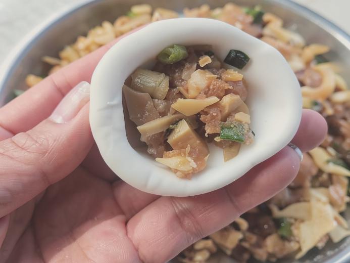实践队员罗晗阳赴江西抚州调研年俗文化,沉浸式参与当地特色芋饺的制作。江西芋饺以武夷山余脉的九头芋搭配红薯淀粉制皮,以冬笋、香菇、土猪肉为馅,烹煮讲究鲜香本真。其寓意团圆安康,谐音寄寓“交好运”。队员切身体验,不仅感受到地方民俗美食的独特韵味,更体会到中华年俗文化中蕴含的团圆美好与人文温情。