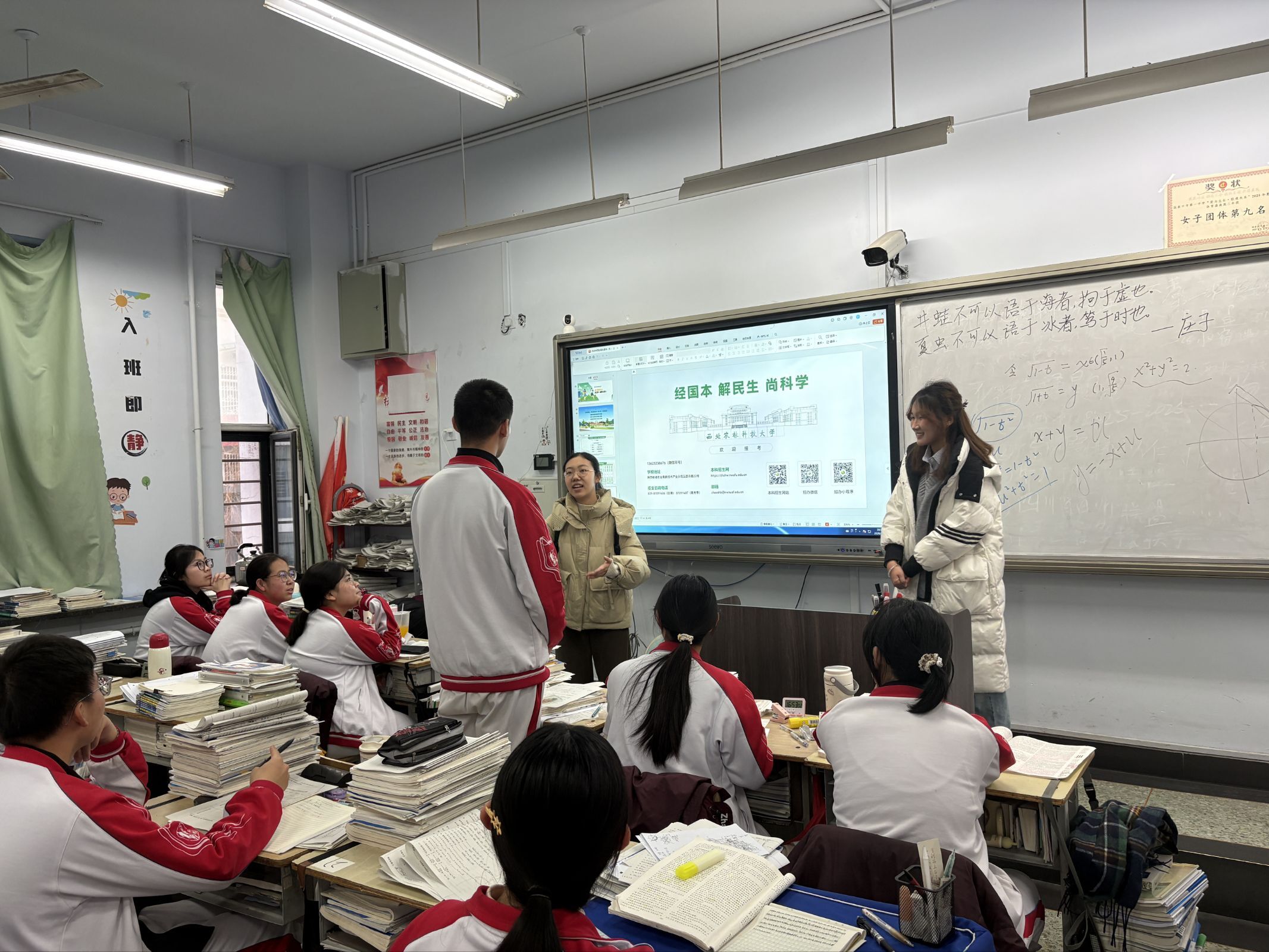 活动聚焦于进班面对面交流,通过PPT系统展示学校历史、学科优势、科研成果、校园文化及招生政策,并结合互动问答与纪念品发放增强参与感.本次活动旨在搭建沟通桥梁,帮助高中学子更直观地了解西北农林科技大学的特色,同时传递“经国本、解民生、尚科学”的办学理念。
