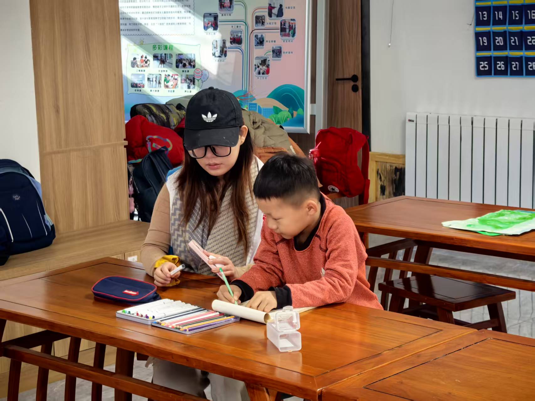 有位爸爸看着孩子主动举手分享的样子,轻声对志愿者说道:“孩子平时不爱主动说话,今天这么积极,看到你们的课程设计这么用心,我们特别放心。”听到这话,志愿团队心里满是触动:出发前反复打磨的互动方案、精心准备的教具和贴纸,在看到孩子们亮晶晶的眼睛、听到他们稚嫩的发音时,都变成了最值得的付出。孩子们的热情与真诚,不仅化解了首次见面的陌生感,更让志愿团队的教学信心倍增,对后续课堂充满期待。