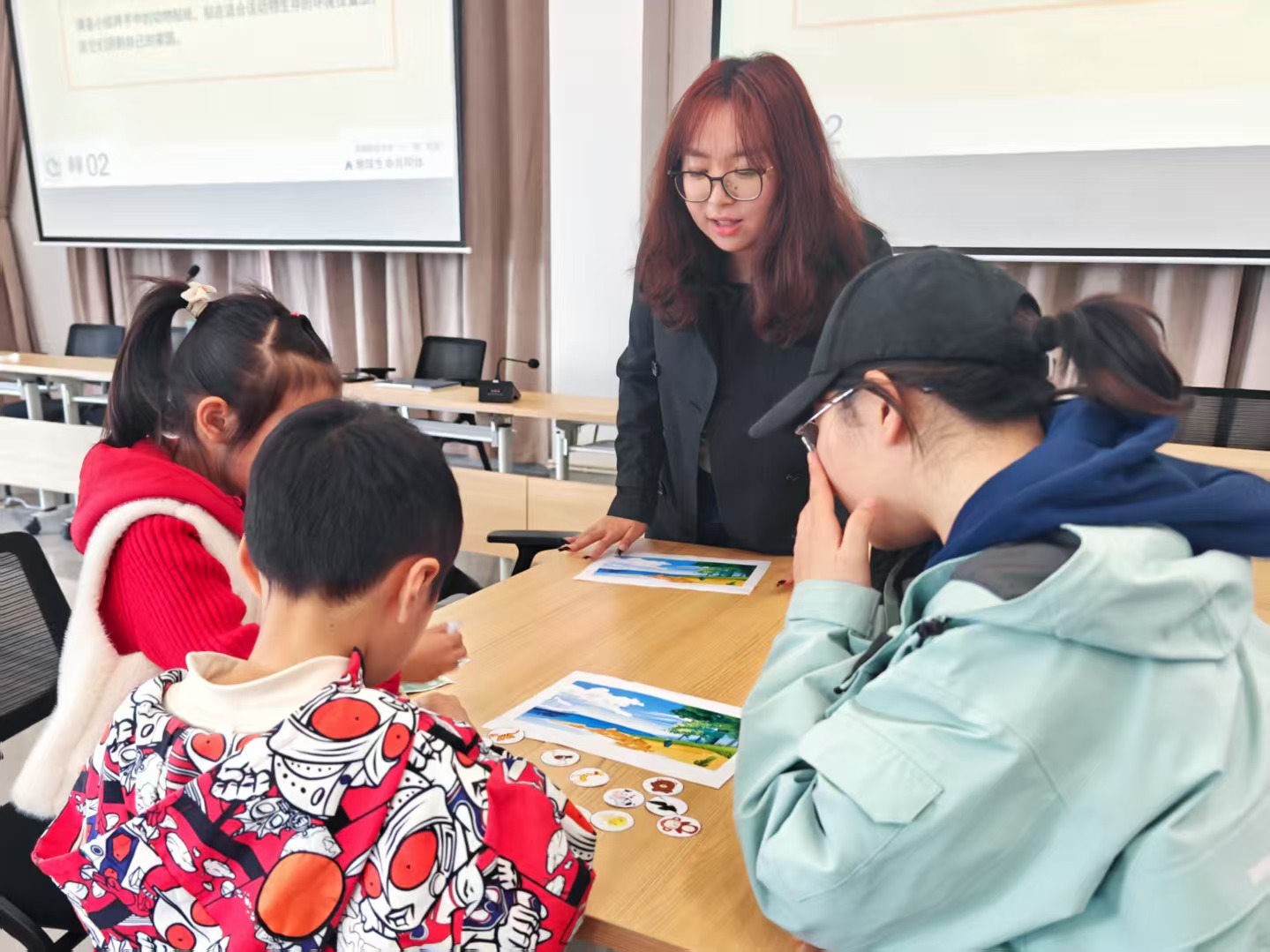 图为“翠脉兴源实践队”实践队队员带领孩子们开展“全球气候大会”主题互动游戏。李书祺 供图