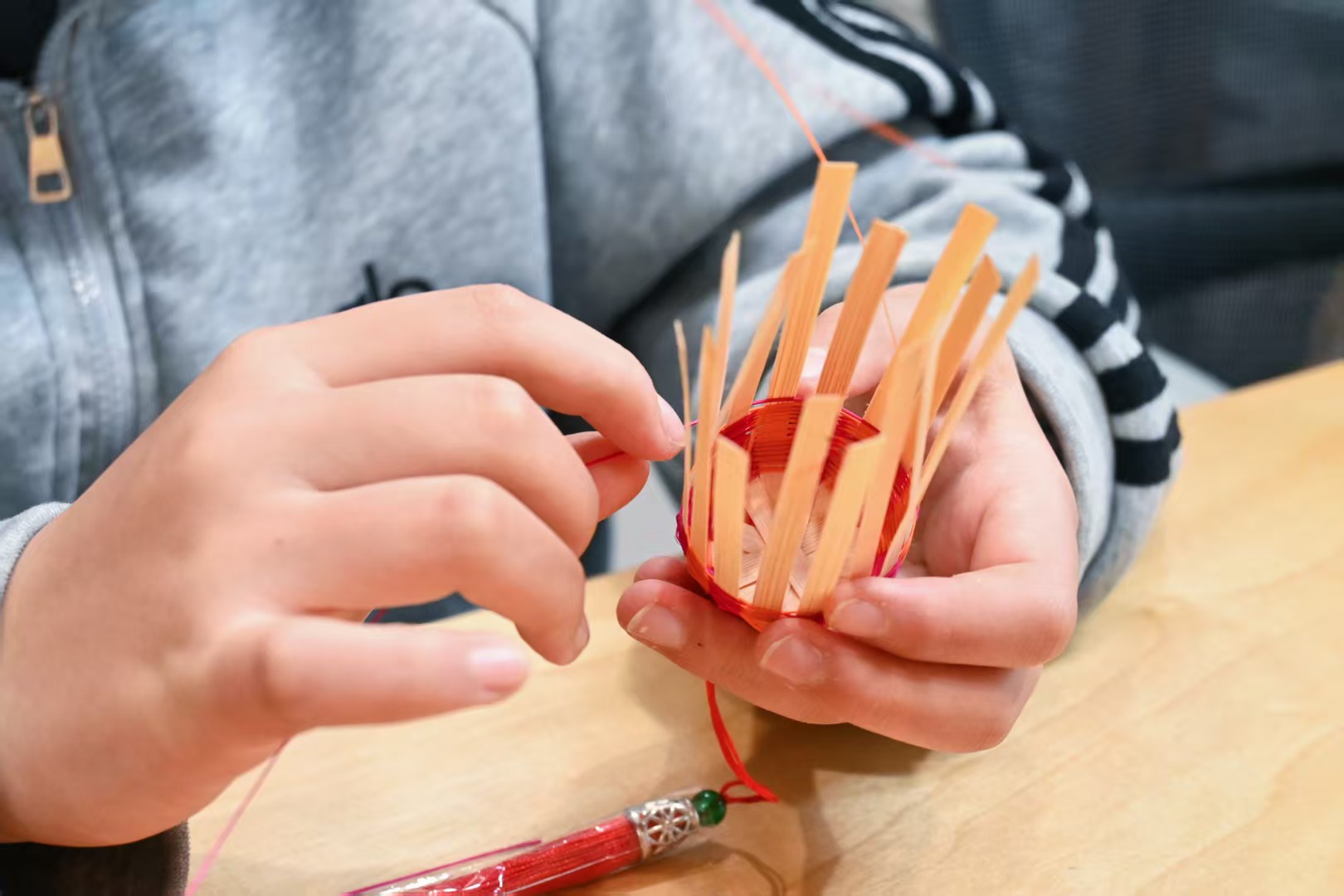 图为竹艺村的小朋友在非遗竹编课上专注地进行竹编手工制作。李书祺 供图