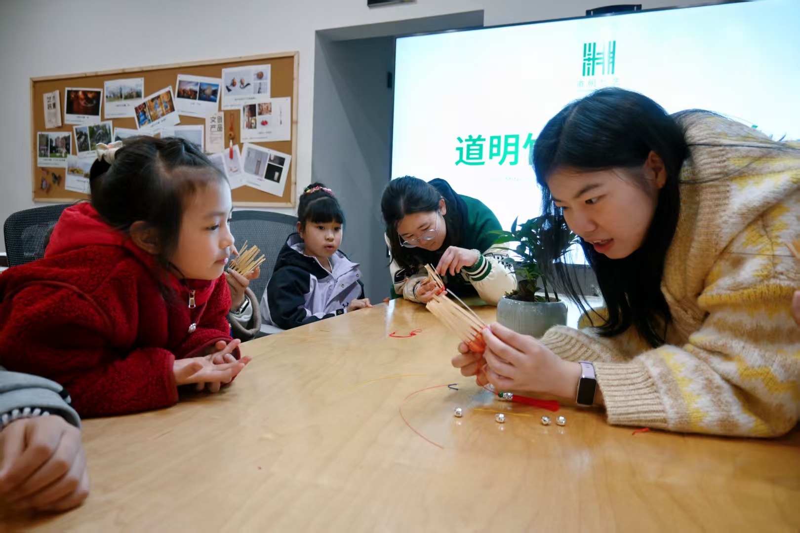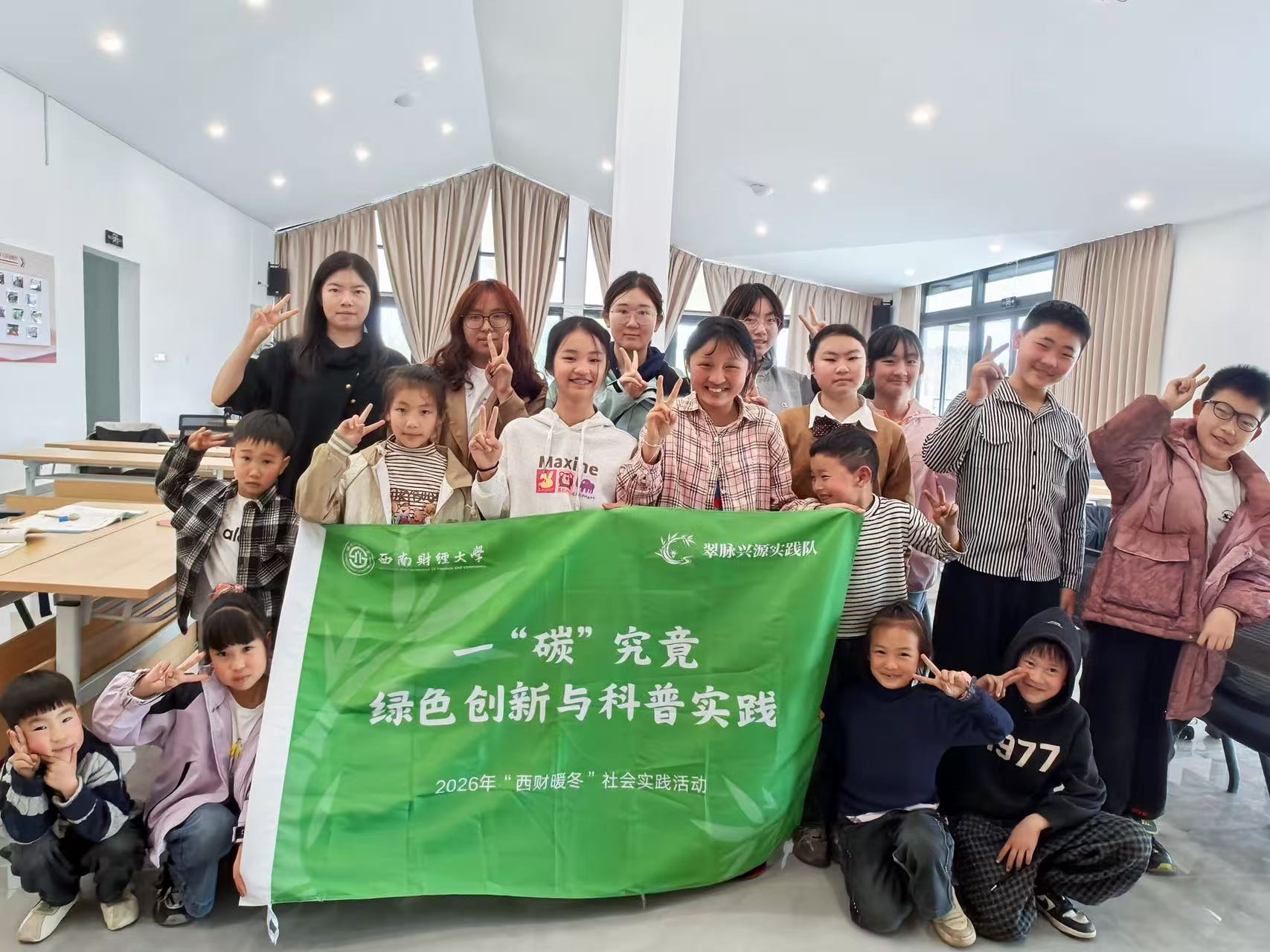 2月24日至3月1日,西南财经大学“翠脉兴源”实践队走进崇州市道明镇竹艺村,为当地孩子们开展为期六天的公益支教活动。本次活动以“非遗传承+低碳教育”为主题,实践队设计了“地球生命共同体”“碳源与碳汇”“全球气候大会”等系列低碳课程,通过地图探访濒危动物、模拟游戏体验发展与环保平衡等方式,引导孩子们树立环保意识。活动最后一天,实践队邀请竹编非遗传承人为孩子们授课,从道明竹编三百余年历史讲起,手把手教孩子们用“挑一压一”技法编织竹编铃铛,让孩子们在动手实践中感受国家级非物质文化遗产的独特魅力。课程结束后,孩子们用六天积累的低碳币参加拍卖会,拍下心仪礼物,竹艺村党支部书记为孩子们颁发荣誉奖项。六天时间虽短,但非遗传承与环保理念的种子已悄然落入孩子们心中。