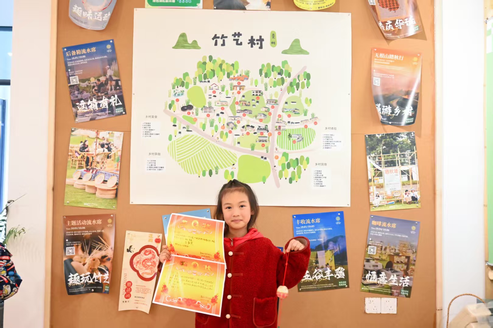 图为参与实践活动的小朋友在竹艺村活动现场展示获得的奖状。李书祺 供图