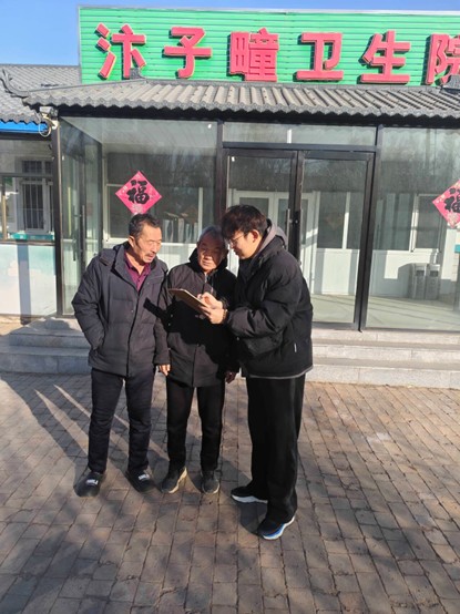 图为王文璟同学在村中帮助老人填写档案,并填写老人对于村中的期望和调查问卷。 王文璟供图