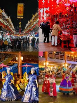 大同的新年,是古都底蕴与民俗活力的交融。古城墙上巨型骏马灯组与灯海相映成趣,街巷间光影秀勾勒“火树银花不夜天”的盛景;社火巡游从清远门出发,彩车、舞龙、舞狮轮番登场,串联起北魏明堂遗址等历史遗存,让古城成为流动的历史舞台。年货市集里,浑源凉粉、什锦火锅等非遗美食香气四溢,北路梆子、踢鼓秧歌等非遗表演精彩亮相,多民族交融的文化基因,让古都年味独具韵味。