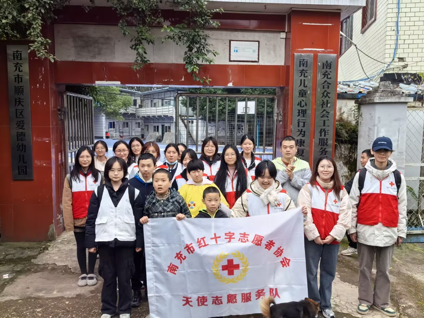 南充市红十字志愿者协会天使志愿服务队与孩子们的合照 摄影:左玉兰