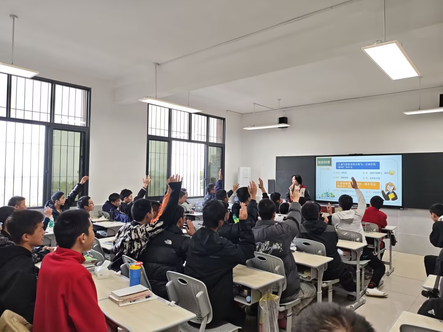 同学们倾听志愿者讲解 摄影:左玉兰 随后的知识问答环节将现场气氛推向高潮。志愿者们提出“管道标识牌上的红色代表什么”“发现管道附近有施工行为该怎么办”等贴近实际的问题,同学们踊跃举手、争相抢答,有的甚至站起身大声说出答案,掌声与欢呼此起彼伏。每位答对的同学都获得了特制的“管道安全小卫士”纪念徽章,在轻松愉快的互动中进一步巩固了所学知识。互动环节结束后,在志愿者带领下,全体同学起立,右手握拳举过肩头,庄严宣读《管道安全小卫士宣誓词》。铿锵有力的誓言在教室内回荡,将“保护管道,人人有责”的信念深深烙在每个人心中。