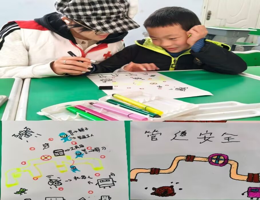 活动中,为了让安全知识更易入脑入心,现场特别设置了管道安全主题绘画环节。志愿者们提前备好画纸与彩笔,耐心细致地手把手引导孩子们描绘心中的“安全管道世界”,鼓励他们用色彩表达对管道安全的认知。孩子们尽情发挥想象力,有的画出整洁通畅的管道,有的描绘志愿者讲解安全知识的情景,还有的用画笔标注出“燃气安全”“管道安全”等温馨提示。志愿者穿梭在孩子们中间,一边协助调色、构图,一边轻声讲解画作中的安全寓意,将管道安全知识悄然融入艺术创作,让孩子们在涂涂画画中深化记忆。
