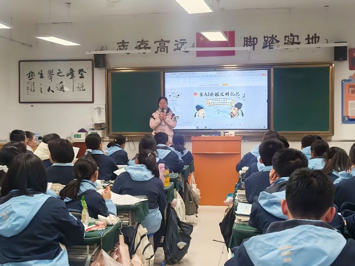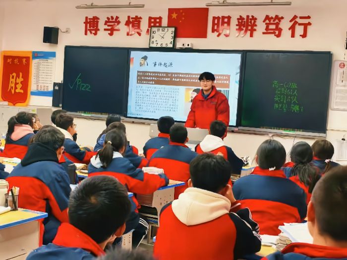 为贴合同学们的知识储备与兴趣点,实践队精心挑选了张衡、李时珍、徐光启等中学课本中常见的历史名人。学子们提前搜集古籍文献、传世画像及课本知识点等资料,认真梳理名人核心事迹与历史成就,精心设计宣讲内容,巧妙搭建历史与现代的桥梁。宣讲过程中,队员们介绍李时珍编撰《本草纲目》的艰辛历程时,顺势延伸讲解现代中药种植中的大数据应用;分享徐光启撰写《农政全书》的相关故事时,结合家乡苹果种植的智慧农业技术展开解读,同学们听得津津有味,不时举手提问互动。