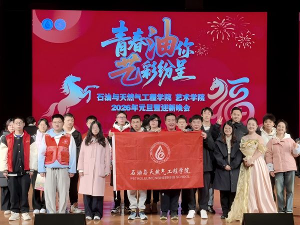 2025年12月21日晚,西南石油大学石油与天然气工程学院与艺术学院在双创大楼演播大厅联合举办“青春油你,艺彩纷呈”2026年元旦迎新晚会。两院师生代表、校企合作单位嘉宾等共计1000余人观看演出。本次晚会由两院协同策划,其中石油与天然气工程学院青年志愿者协会承担了全程志愿服务保障工作,为晚会的顺利举办提供了有力支持。
