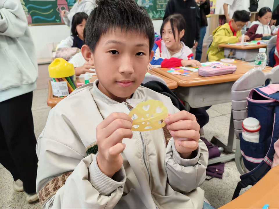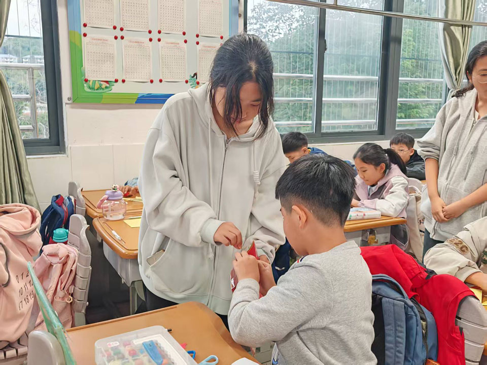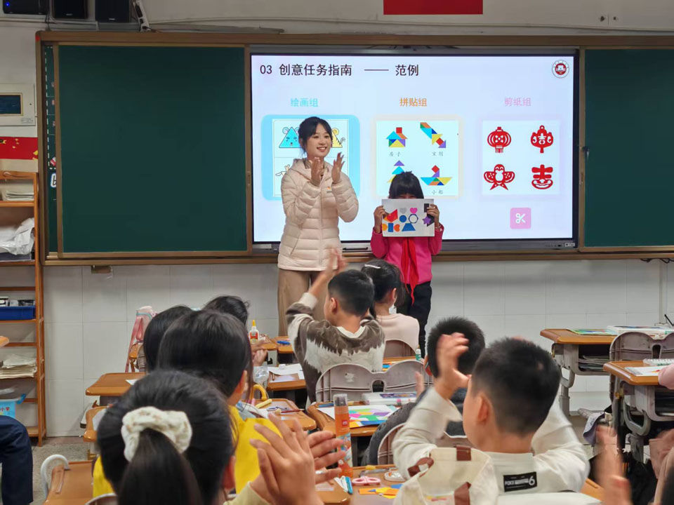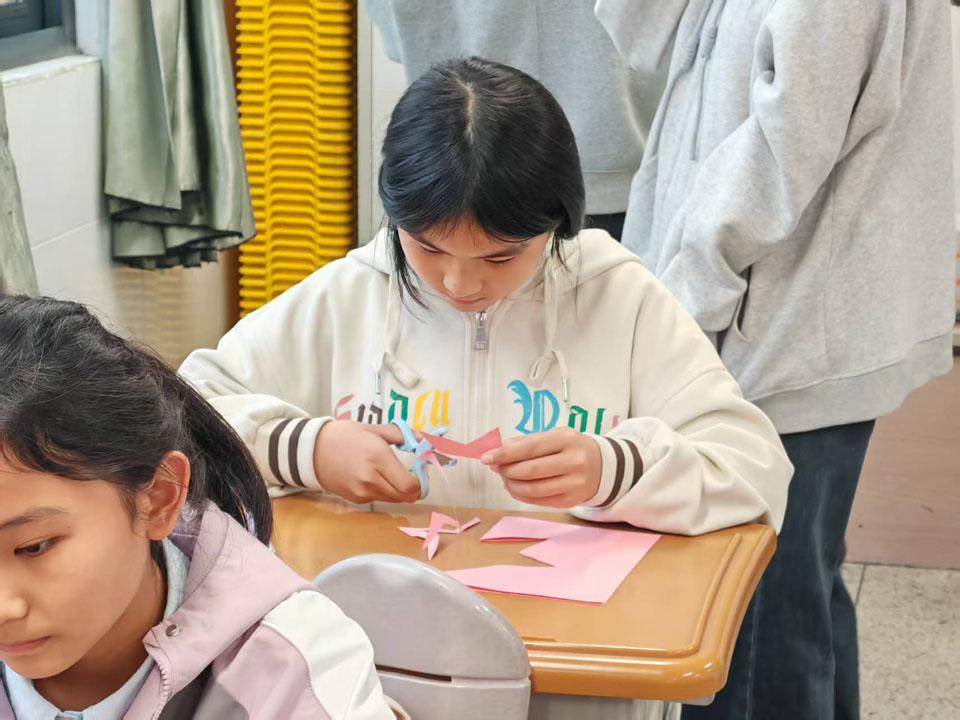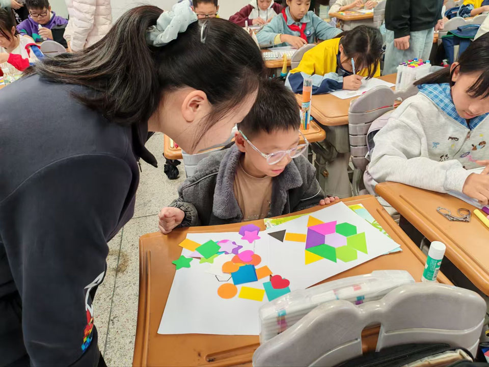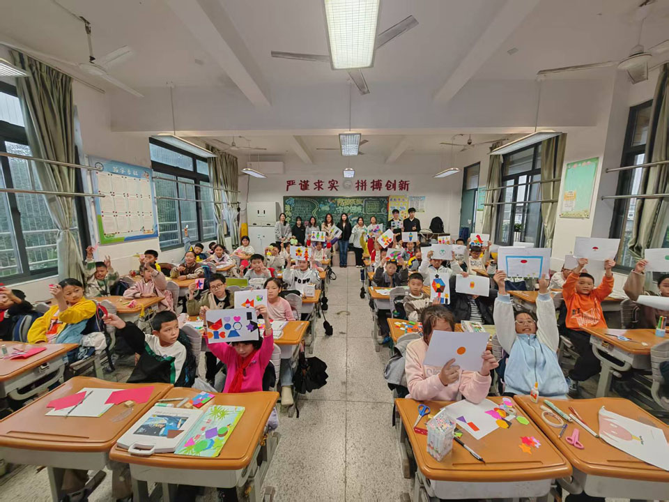 11月4日下午,福建师范大学数学与统计学院2023级数学与应用数学专业1班团支部联合福建师范大学美术学院2023级国画班团支部于福州市麦浦小学组织以“融美于数,启智于心”为主题的数学美育课堂活动。此次活动面向五年2班学生,通过绘画、拼贴、剪纸的艺术形式,引导学生在实践中感受轴对称图形的对称美与和谐美,探索数学学科的美育功能。