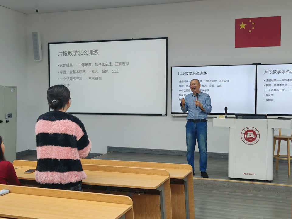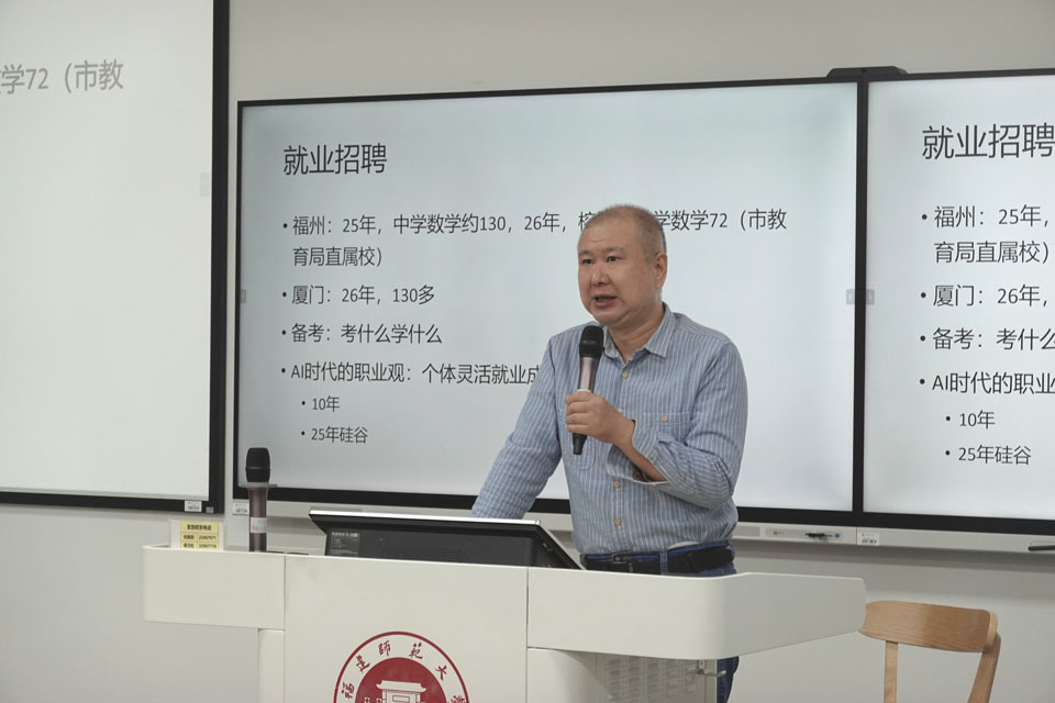 活动伊始,董涛老师就师范生就业形势与教学技能提升进行发言。董涛老师通过福州、厦门两地近两年的教师招聘数据,分析当前就业环境的机遇与挑战,鼓励同学们尽早明确职业目标,系统备考教师招聘考试。同时,深入探讨了人工智能时代对教师职业的影响,指出未来教师角色将更侧重于个性化引导与情感交流,并强调善用AI工具辅助教学的重要性。随后,陈梦婷学姐结合自身参赛经历,系统介绍了国家、省、院三级师范生教学技能竞赛,并总结出片段教学的注意事项。在互动问答环节,支部成员积极提问,现场氛围活跃。