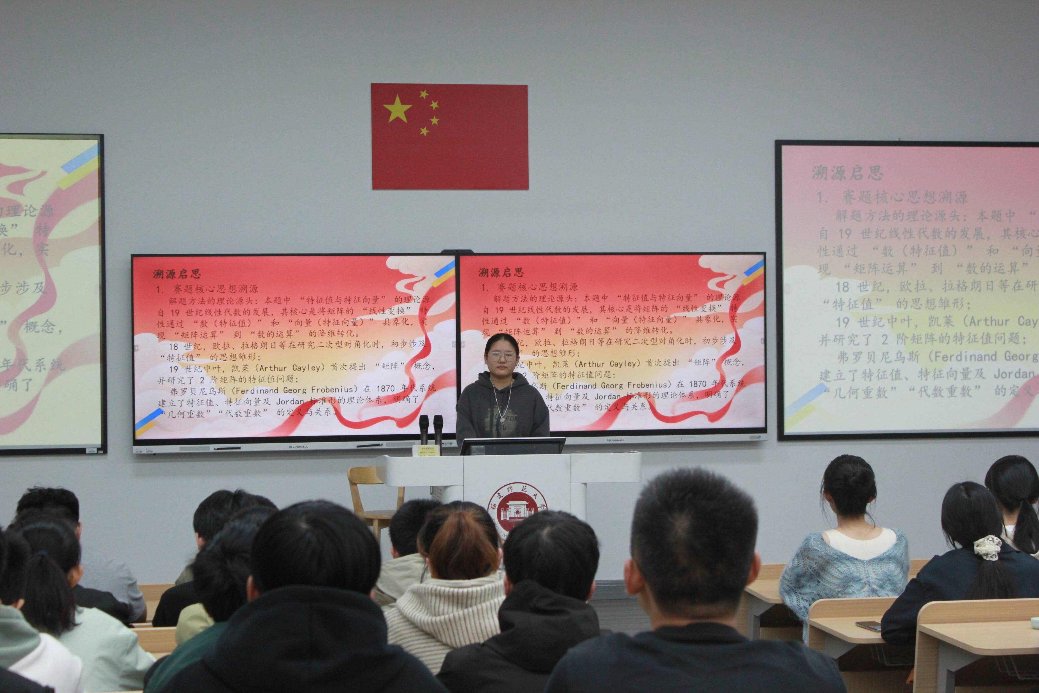 为提升学生数学竞赛能力,弘扬数学家严谨治学的精神品质,福建师范大学数学与统计学院2023级数学与应用数学专业实验班团支部于11月14日在知明楼1-206教室成功举办“萤雪功深曾砺剑,星霜志远共传薪”活动。本次活动围绕“解题—溯源—品格—交流”四个环节展开,旨在帮助学生在掌握竞赛技巧的同时深化对数学思想与数学精神的理解。