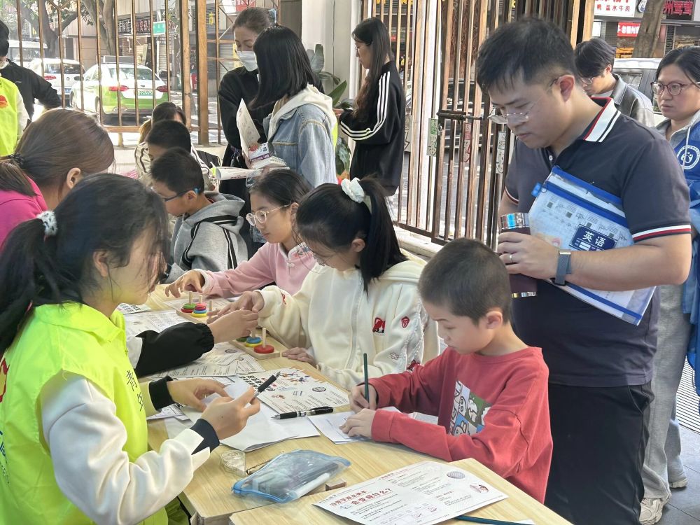 活动现场精心设置了六大数学主题游戏区,覆盖思维训练、逻辑推理、动手实践等多个维度,让孩子们在玩中学中沉浸式感受数学的实用与趣味。现场既充满思维碰撞的活力,又不失有序互动的温馨,热烈氛围持续升温。