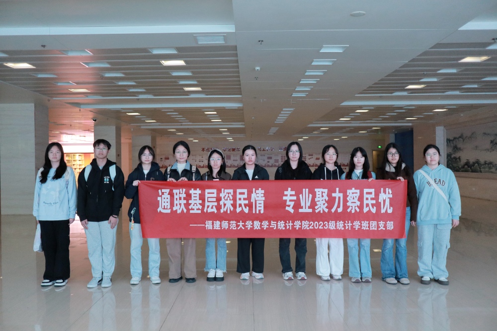 近日,福建师范大学数学与统计学院2023级统计学班团支部携手国家统计局福州调查队,开展“通联基层探民情,专业聚力察民忧”主题实习活动。此次实践历练,以政府统计工作为载体,为支部成员搭建了专业赋能与成长进阶的优质平台,实现理论素养与实践能力的双向提升。