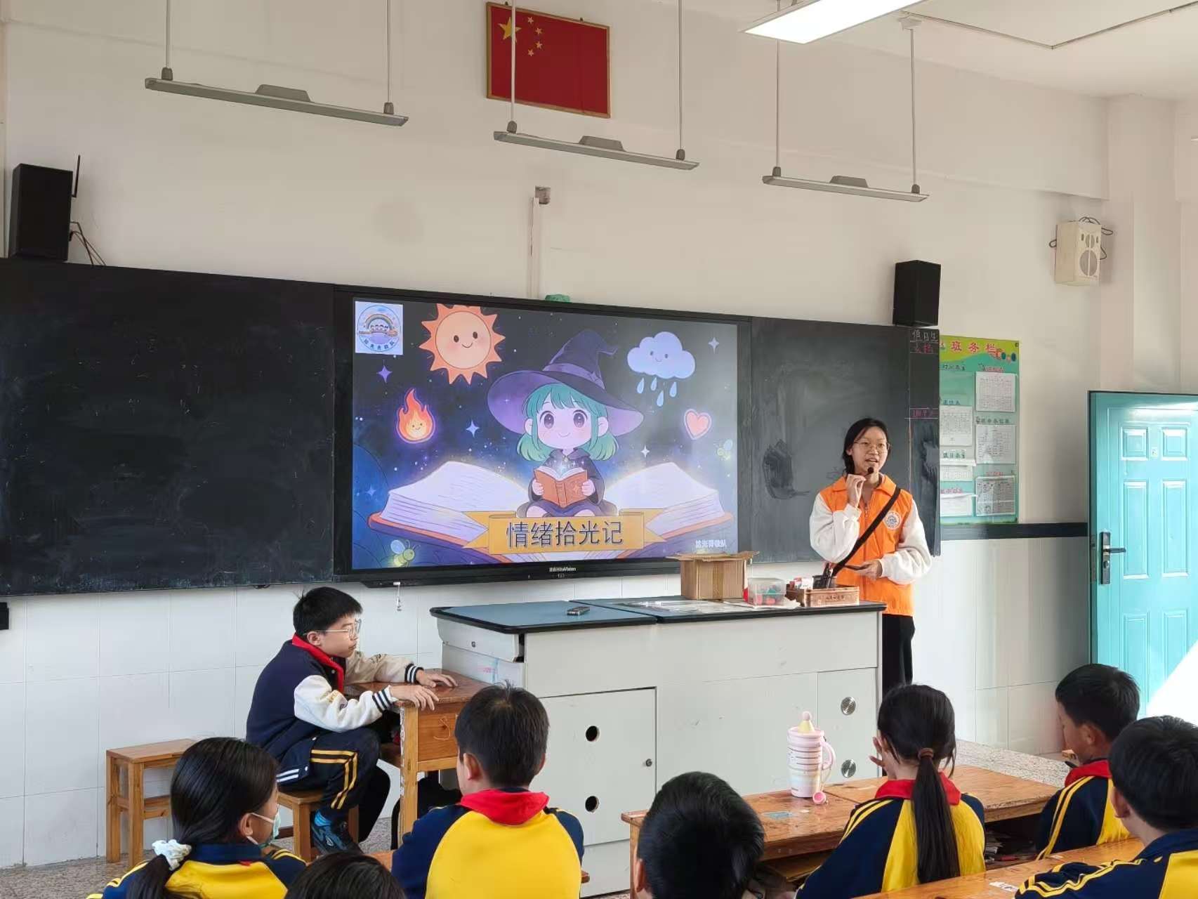 课程最后,老师带领全体同学齐声朗读情绪管理口诀:“喜与怒,哀与乐,皆情绪,很正常。善待它,心舒畅。”孩子们在朗朗声中感悟情绪的真谛,也感受到来自志愿者团队的温暖陪伴。