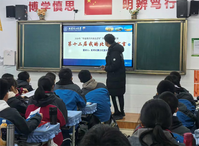 为积极响应“创青春”社会实践活动号召,深化与优质生源基地陕西省咸阳彩虹中学的联动交流,向母校学弟学妹们展现高校办学风采、分享学业成长经验,助力高三学子明晰升学方向、坚定备考信念,北京化工大学“虹桥化翼北化宣讲团”实践团五名成员,怀揣对母校的感恩之心与对高校生活的感悟,于2026年2月重返咸阳彩虹中学,顺利开展返校宣讲系列活动。